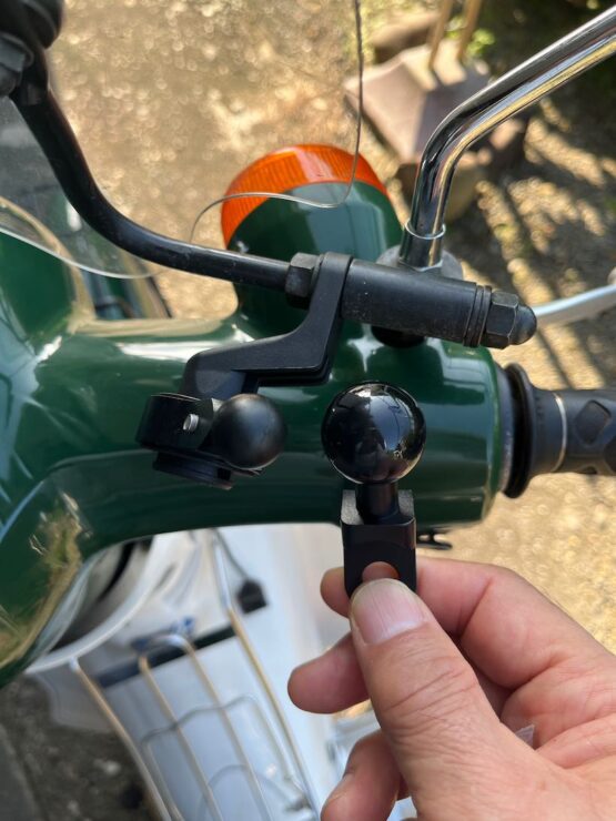 しかもカブは後付けのUSBソケットなので、エンジン停止でも充電できるんだった。