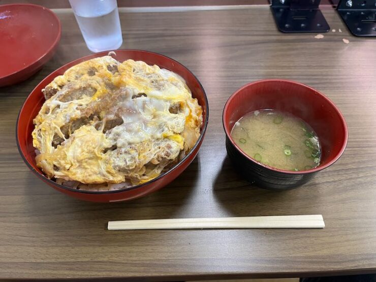 2時間前にサンドウィッチを食べたのも忘れて、名物のカツ丼(並)を注文。