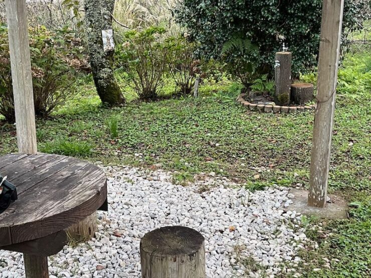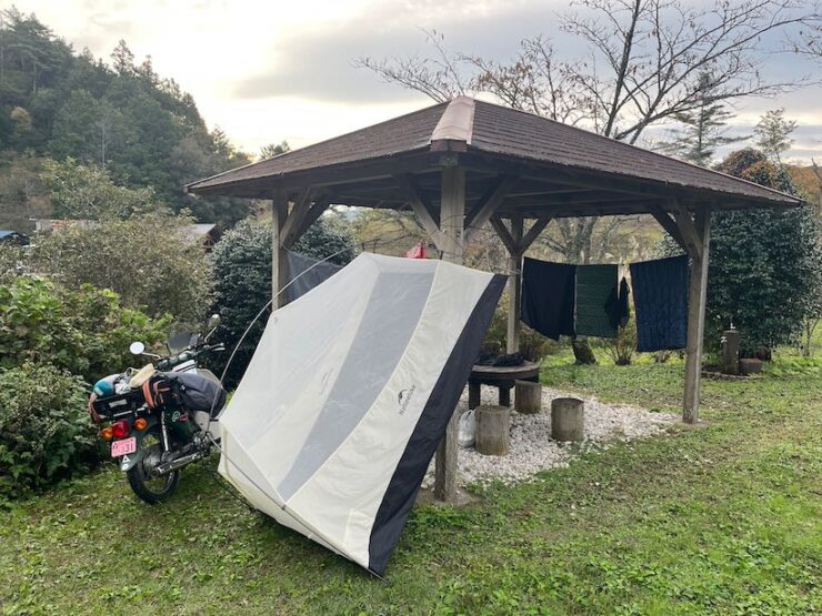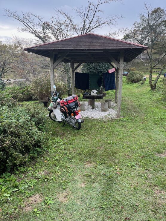 無料のキャンプ場なのですが、東屋の下には白い砕石を敷いてドロドロにならない様にしてたり、